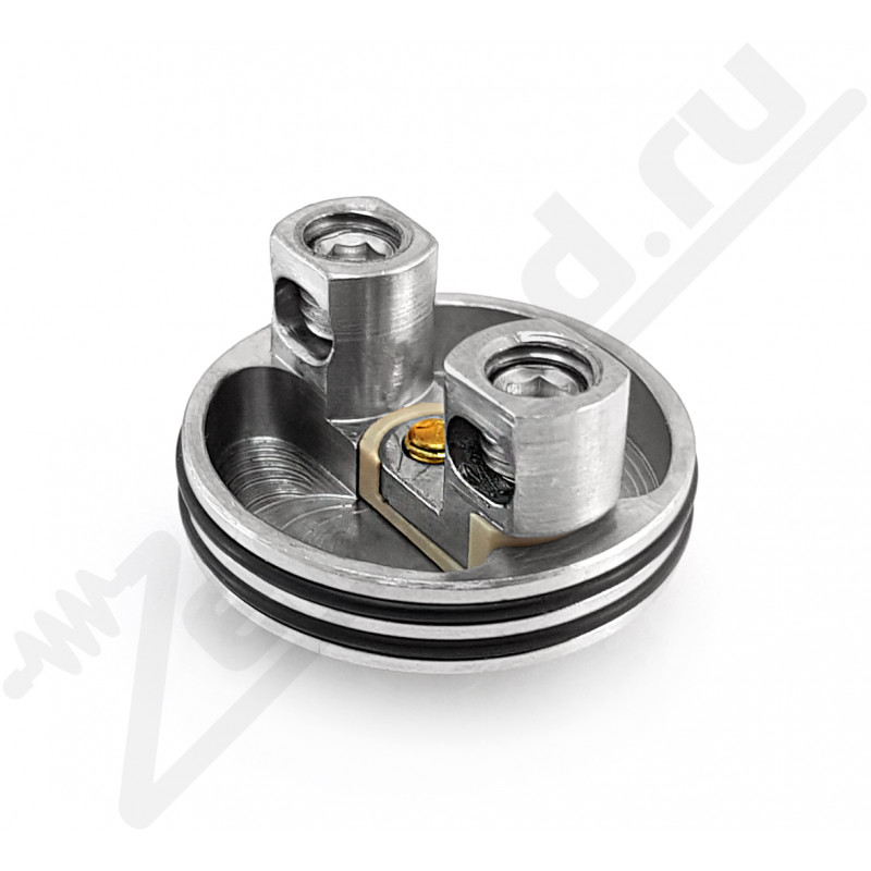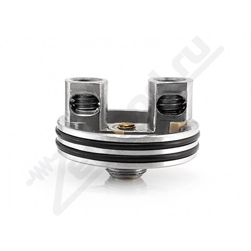 Обработка купола сферическая, что вместе с небольшой высотой паропровода дает ожидаемо прекрасную вкусопередачу. База классическая, двухстоечная, установка спиралей встречная, что считается относительно сложным вариантом, но не сильно. Пазы в стойках просто огромные, целых 4.85 мм, так что любые, даже самые жирные намотки, войдут сюда абсолютно спокойно, причем хоть одна, хоть две, купол позволяет ставить и 1 спираль, но это “такое себе” в этом случае.